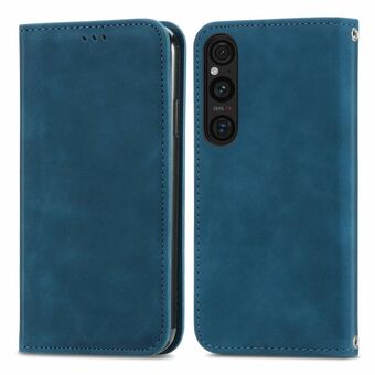For Sony Xperia 1 V Retro Skin Feel Magnetic Flip Leather Phone Case(Blue)