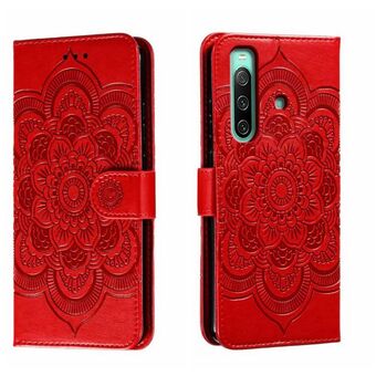 Για Sony Xperia Ace III Sun Mandala ανάγλυφο μοτίβο τηλέφωνο δερμάτινη θήκη (κόκκινο)