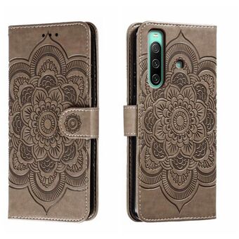 Για Sony Xperia 10 V Sun Mandala ανάγλυφο μοτίβο τηλέφωνο δερμάτινη θήκη (γκρι)