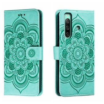 Για Sony Xperia 10 III Sun Mandala ανάγλυφο μοτίβο τηλέφωνο δερμάτινη θήκη (πράσινο)