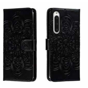 Για Sony Xperia 10 V Sun Mandala ανάγλυφο μοτίβο τηλέφωνο δερμάτινη θήκη (μαύρο)
