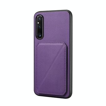 Για Sony Xperia 10 V D04 Calf Υφή Dual Slot κάρτα κάτοχος υπόθεση τηλεφώνου (μωβ)