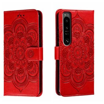 Για Sony Xperia 1 IV Sun Mandala ανάγλυφο μοτίβο τηλέφωνο δερμάτινη θήκη (κόκκινο)