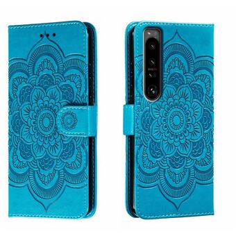 Για Sony Xperia 1 IV Sun Mandala ανάγλυφο μοτίβο τηλέφωνο δερμάτινη θήκη (μπλε)