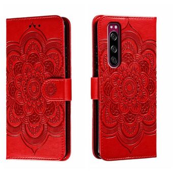 Για Sony Xperia 5 III Sun Mandala ανάγλυφο μοτίβο τηλέφωνο δερμάτινη θήκη (κόκκινο)