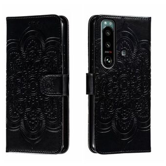 Για Sony Xperia 1 IV Sun Mandala ανάγλυφο μοτίβο τηλέφωνο δερμάτινη θήκη (μαύρο)