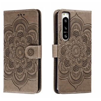 Για Sony Xperia 5 IV Sun Mandala ανάγλυφο μοτίβο τηλέφωνο δερμάτινη θήκη (γκρι)