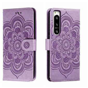 Για Sony Xperia 5 IV Sun Mandala ανάγλυφο μοτίβο τηλέφωνο δερμάτινη θήκη (μωβ)