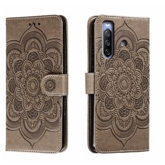 Για Sony Xperia 10 III Sun Mandala ανάγλυφο μοτίβο τηλέφωνο δερμάτινη θήκη (γκρι)