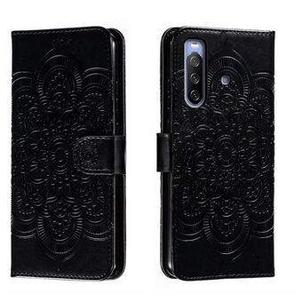 Για Sony Xperia 10 III Sun Mandala ανάγλυφο μοτίβο τηλέφωνο δερμάτινη θήκη (μαύρο)
