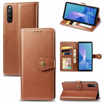 For Sony Xperia 10 III Solid Color Leather Buckle Phone Case with Lanyard & Photo Frame & Card Slot & Wallet & Stand Function(Brown)
