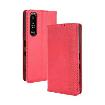 For Sony Xperia 1 III Magnetic Buckle Retro Crazy Horse Texture Horizontal Flip Leather Case with Holder & Card Slots & Photo Frame(Red)