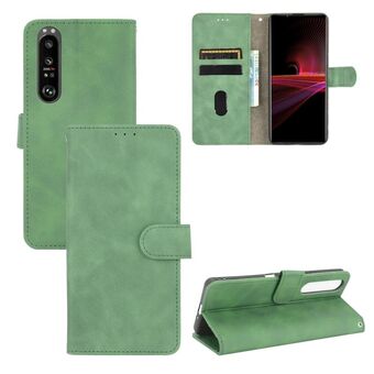 For Sony Xperia 1 III Solid Color Skin Feel Magnetic Buckle Horizontal Flip Calf Texture PU Leather Case with Holder & Card Slots & Wallet(Green)