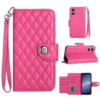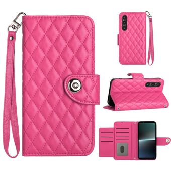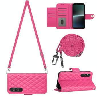 For Sony Xperia 10 IV Rhombic Texture Flip Leather Phone Case with Long Lanyard(Rose Red)