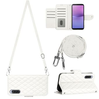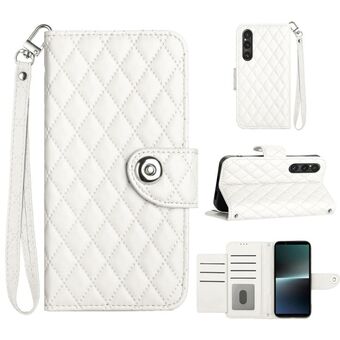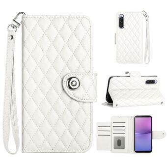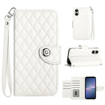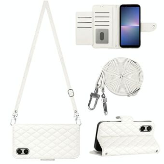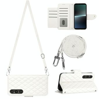 For Sony Xperia 10 IV Rhombic Texture Flip Leather Phone Case with Long Lanyard(White)