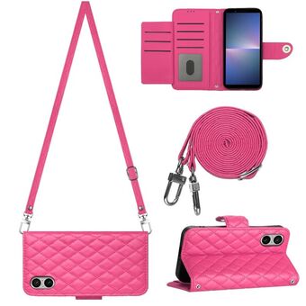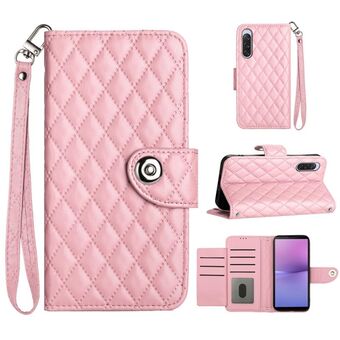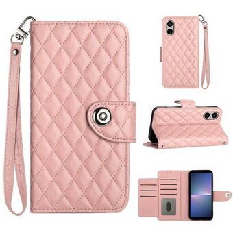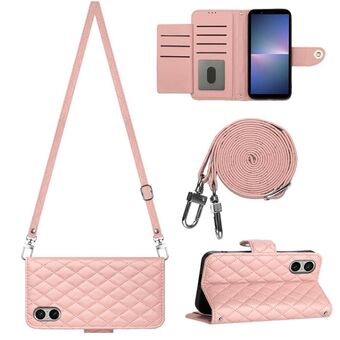 For Sony Xperia 10 IV Rhombic Texture Flip Leather Phone Case with Long Lanyard(Pink)
