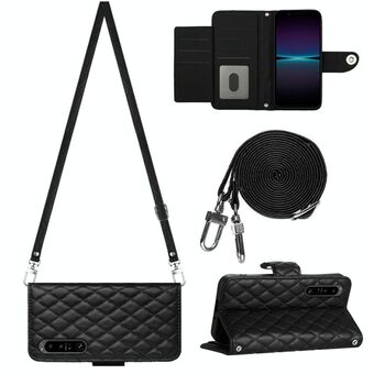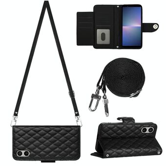 For Sony Xperia 10 IV Rhombic Texture Flip Leather Phone Case with Long Lanyard(Black)