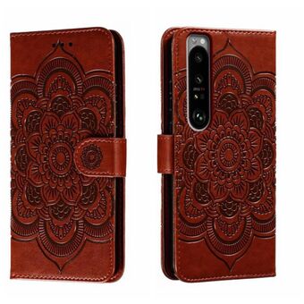 For Sony Xperia 1 III Sun Mandala Embossing Pattern Phone Leather Case(Brown)
