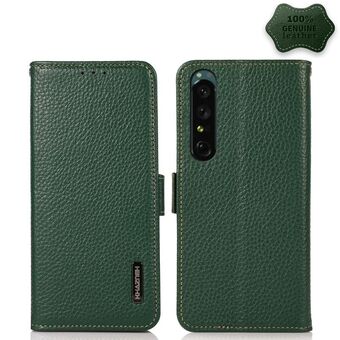 For Sony Xperia 1 IV KHAZNEH Side-Magnetic Litchi Genuine Leather RFID Phone Case(Green)