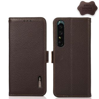 For Sony Xperia 1 IV KHAZNEH Side-Magnetic Litchi Genuine Leather RFID Phone Case(Brown)