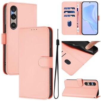 For Sony Xperia 5 VI 2024 Skin Feel Solid Color Leather Phone Case with Lanyard(Pink)
