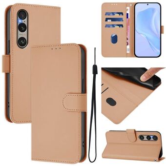 For Sony Xperia 5 VI 2024 Skin Feel Solid Color Leather Phone Case with Lanyard(Brown)