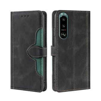 For Sony Xperia 5 III Skin Feel Straw Hat Magnetic Buckle Horizontal Flip PU Leather Case with Holder & Card Slots & Wallet(Black)