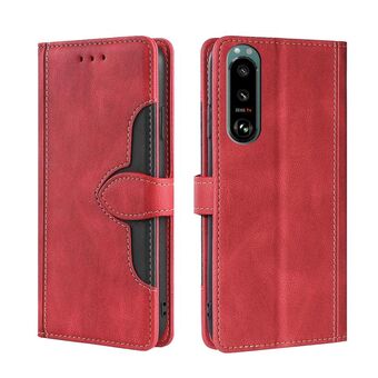 For Sony Xperia 5 III Skin Feel Straw Hat Magnetic Buckle Horizontal Flip PU Leather Case with Holder & Card Slots & Wallet(Red)