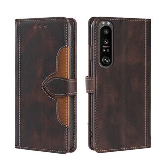 For Sony Xperia 1 III Skin Feel Straw Hat Magnetic Buckle Horizontal Flip PU Leather Case with Holder & Card Slots & Wallet(Brown)