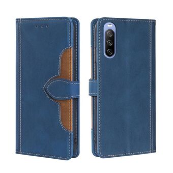 For Sony Xperia 10 III Skin Feel Straw Hat Magnetic Buckle Horizontal Flip PU Leather Case with Holder & Card Slots & Wallet(Blue)