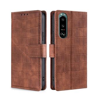 For Sony Xperia 5 III Skin Feel Crocodile Texture Magnetic Clasp Horizontal Flip PU Leather Case with Holder & Card Slots & Wallet(Brown)