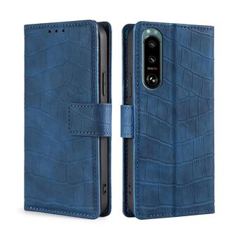 For Sony Xperia 5 III Skin Feel Crocodile Texture Magnetic Clasp Horizontal Flip PU Leather Case with Holder & Card Slots & Wallet(Blue)