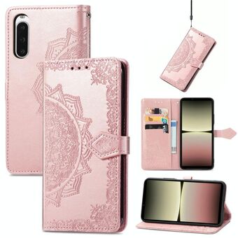 Για το Sony Xperia 10 IV Mandala λουλούδι ανάγλυφο δερμάτινη θήκη τηλεφώνου (ροζ χρυσό)