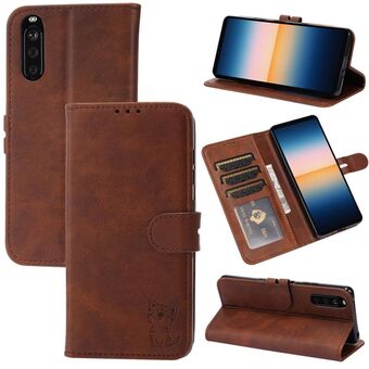 Για το Sony Xperia 10 III Ανάγλυφο Happy Cat Pattern Οριζόντια Flip δερμάτινη θήκη με θήκη για κάρτες & υποδοχές & πορτοφόλι (καφέ)