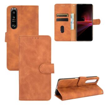 Για το Sony Xperia 1 III Solid Color Skin Feel Magnetic Buckle Horizontal Flip Calf Texture PU Leather Case with Holder & Card Slots & Wallet(Brown)