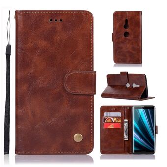 Για Sony Xperia XZ3 Ρετρό χαλκού κουμπί Crazy Horse οριζόντια Flip PU δέρμα υπόθεση με θήκη & υποδοχές για κάρτες & πορτοφόλι & κορδόνι (καφέ)
