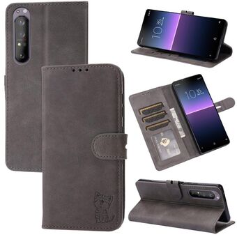 Για Sony Xperia 1 III Ανάγλυφο Happy Cat Pattern Οριζόντια Flip δερμάτινη θήκη με θήκη & υποδοχές για κάρτες & πορτοφόλι (γκρι)