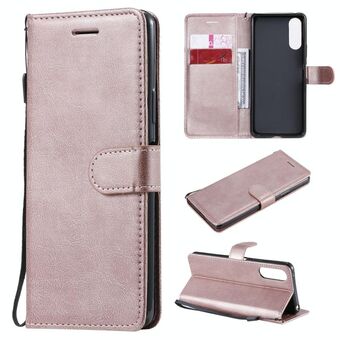 Για Sony Xperia 10 II Αμιγές χρώμα Οριζόντια Flip Προστατευτική δερμάτινη θήκη με θήκη & υποδοχές για κάρτες & πορτοφόλι & κορνίζα & κορδόνι (ροζ χρυσό)