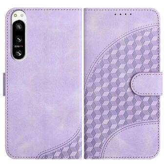 Θήκη δερμάτινη για Sony Xperia 5 IV με ανάγλυφο σχέδιο ελέφαντα και κορδόνι (Ανοιχτό Μωβ)