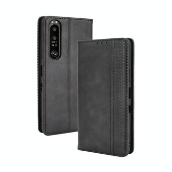 For Sony Xperia 1 III Magnetic Buckle Retro Crazy Horse Texture Horizontal Flip Leather Case with Holder & Card Slots & Photo Frame(Black)