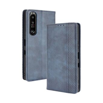 For Sony Xperia 1 III Magnetic Buckle Retro Crazy Horse Texture Horizontal Flip Leather Case with Holder & Card Slots & Photo Frame(Blue)