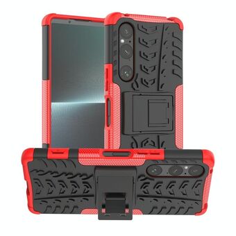 For Sony Xperia 1 V Tire Texture TPU + PC Phone Case with Holder(Red)