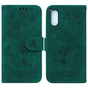 For Sony Xperia 5 V Butterfly Rose Embossed Leather Phone Case(Green)