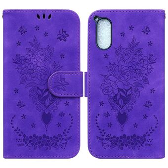 For Sony Xperia 5 V Butterfly Rose Embossed Leather Phone Case(Purple)