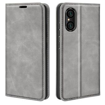 For Sony Xperia 5 V Retro-skin Magnetic Suction Leather Phone Case(Grey)