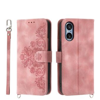 For Sony Xperia 5 V Skin-feel Flowers Embossed Wallet Leather Phone Case(Pink)
