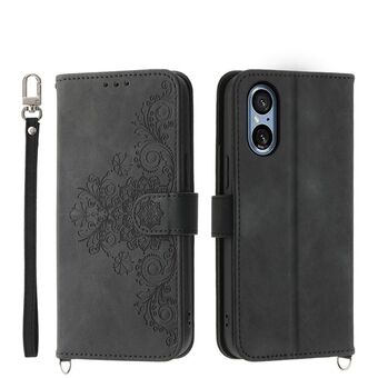 For Sony Xperia 5 V Skin-feel Flowers Embossed Wallet Leather Phone Case(Black)