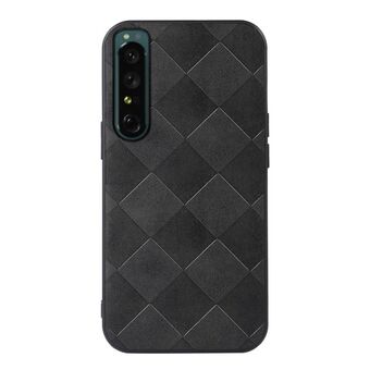 Για Sony Xperia 1 IV Weave καρό PU θήκη τηλεφώνου (μαύρο)