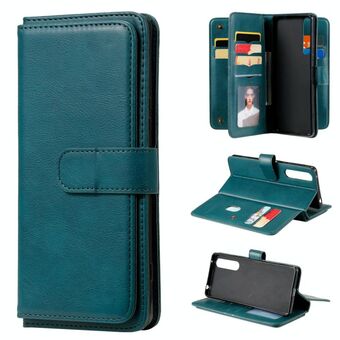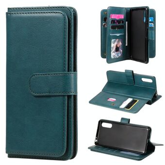 Για Sony Xperia L4 Πολυλειτουργική μαγνητική χάλκινη πόρπη Οριζόντια Flip Αμιγές χρώμα δερμάτινη θήκη με 10 υποδοχές για κάρτες & πορτοφόλι & θήκη & κορνίζα φωτογραφιών (σκούρο πράσινο)