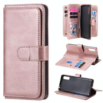 Για Sony Xperia L4 Πολυλειτουργική μαγνητική χάλκινη πόρπη οριζόντια Flip Solid Color δερμάτινη θήκη με 10 υποδοχές για κάρτες & πορτοφόλι & θήκη & κορνίζα φωτογραφιών (ροζ χρυσό)